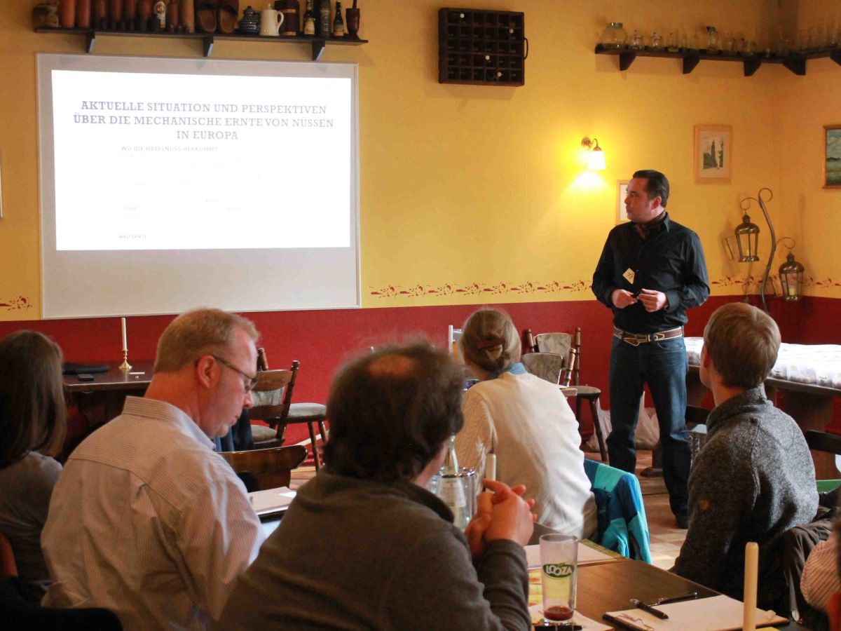 Gastgeber war das NuWiPi-Projekt der Universität Kassel. Das mit Bundesmitteln geförderte Projekt soll den Anbau von Nüssen und Pilzen als Eiweißlieferanten vorantreiben – und braucht dafür Walnussbauern. Die IG Nuss wiederum profitiert von den Ressourcen und Netzwerken der Forschenden.