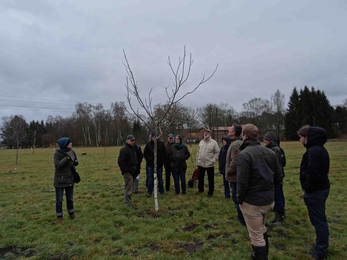 Fachlichen Input lieferte dieses Jahr Herr Burkhard Kayser, der uns über die Grundlagen und Möglichkeiten von Agroforstsystemen im Bezug auf die Walnuss aufklärte. Nach einer kleinen Einführung in den internen Bereich der Walnussbauern-Webseite und dem Mittagstisch ging es hinaus auf die Anlage des Gastgebers, Herrn Gustav-Adolf Engelien. Auf gut 6 Hektaren konnten verschiedene Sorten in verschiedenen Altersstadien begutachtet werden, während Herr Engelien seine Bewirtschaftungsweise erläuterte. Zum Abschluss gab es köstlichen Walnusskuchen und Kaffee in den Engelisch'en Wohnstuben.